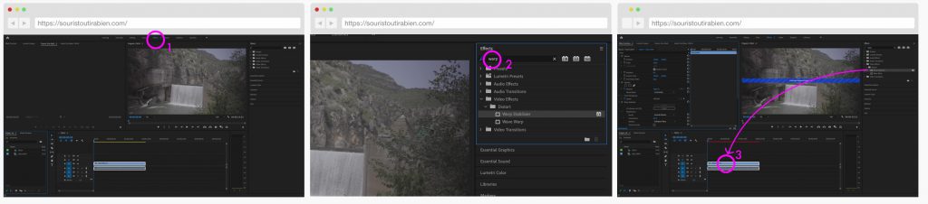 Warp stabiliser! Effet magique qui améliore grandement la stabilité d’un plan tremblant. Aussi facile que d’accéder au panneau d’effets, de rechercher (stabilisation et déformation) et de l’appliquer au plan. Jette un oeil!