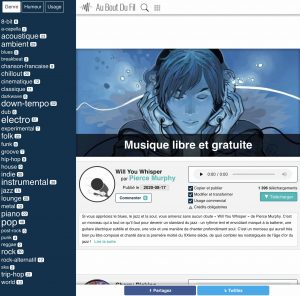 Avec un catalogue d’environ 250 compositions, ils divisent leur librairie en plusieurs types d’usage: valable pour copier et publier , valable pour modifier et transformer, valable pour usage commercial, crédits obligatoires. Leur système de recherche est très intuitif et divisé par genre et par humeur. Facile, rapide et gratuit.