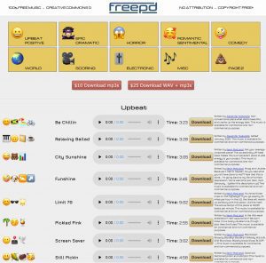 Leur catalogue de 800 chansons téléchargeables en mp3 est gratuit si tu les télécharges une par une. Il y a une option payante 10$ pour télécharger le catalogue complet d’un seul coup ou 25$ pour les compositions en format .wav
