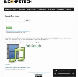 Plus de 1000 titres mp3 composés par Kevin MacLeod libres de droits et Creative Commons type 4 (c’est-à-dire qu’il est important de ne pas oublier de créditer l’artiste)!